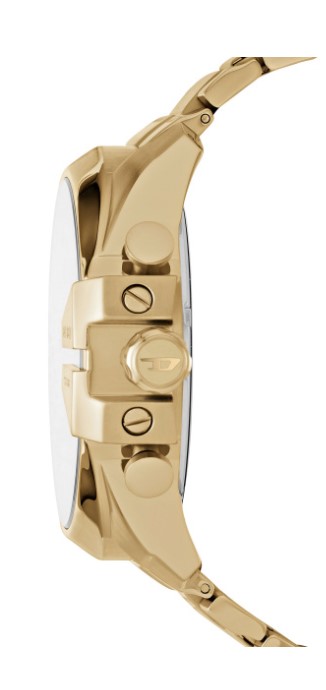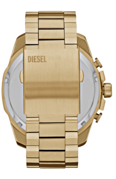 Diesel Quartz heren pols horloge staal met stalen band goudkleurig uit de collectie Mega Chief.