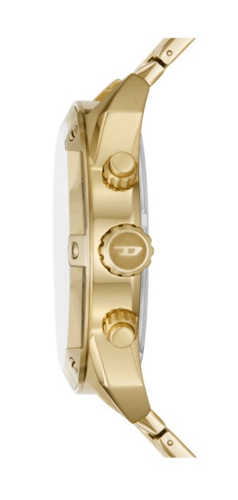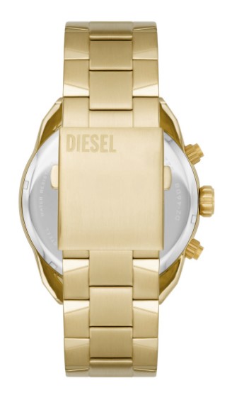 Diesel quarts heren pols horloge staal met stalen band goudkleurig uit de Spiked collectie. 5 ATM waterdicht.