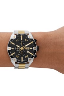 Diesel Quartz heren pols horloge staal met stalen band bicolor uit de collectie Spiked.