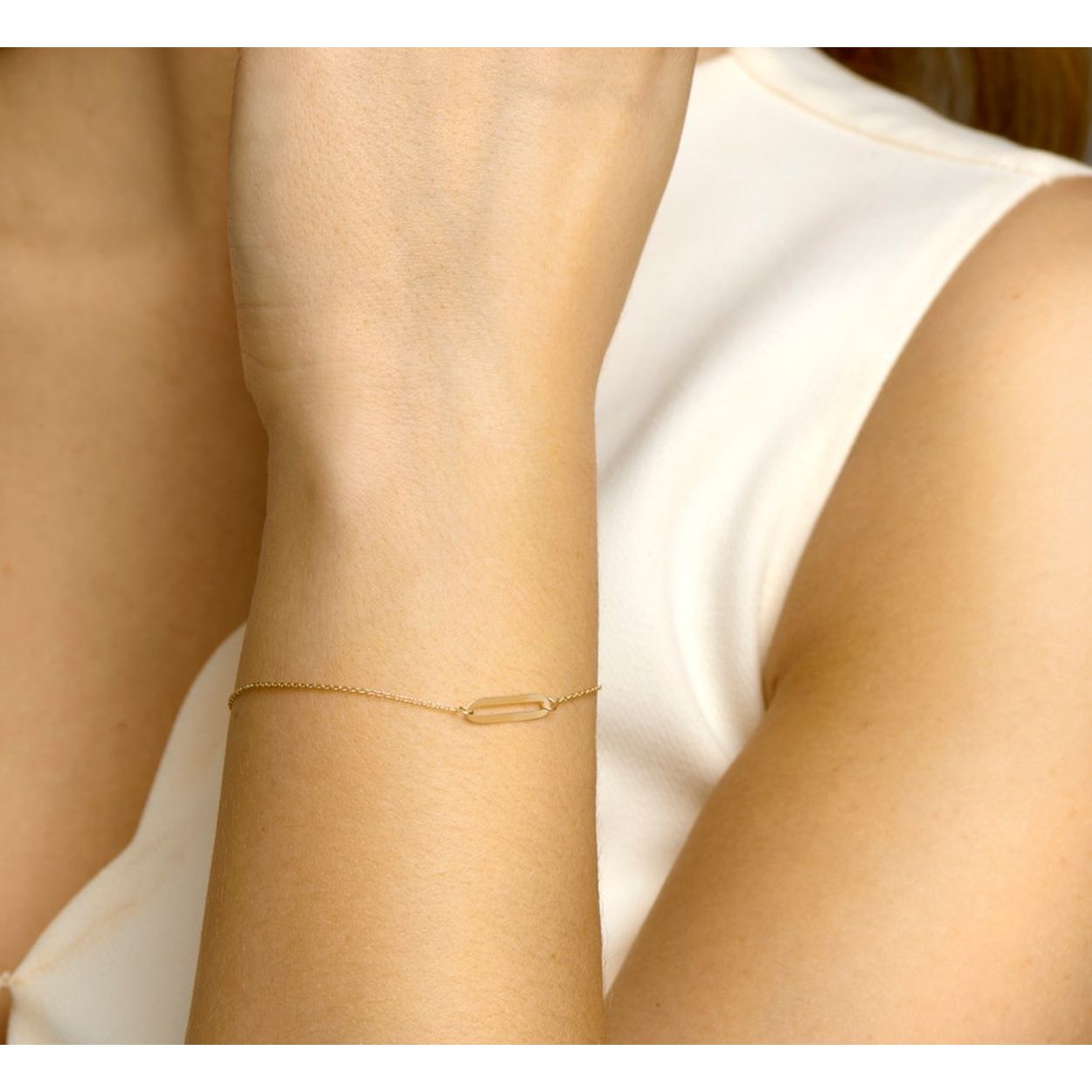14 Karaat fijn geel gouden armbandje met een papaclip tussen stuk.