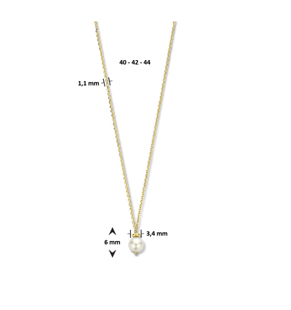 Geelgouden anker collier uitgevoerd met een zoetwaterparel.
