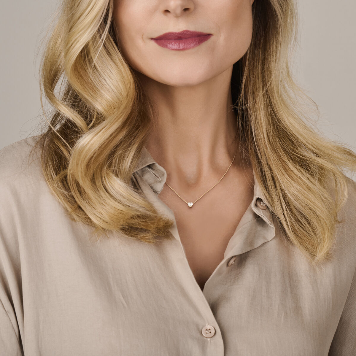 14k Geelgouden collier uitgevoerd met een hart zirkonia. Het collier heeft draaglengtes van 41, 43 en 45cm. Uitgevoerd met karabijn sluiting. De schakelbreedte is 1mm.
