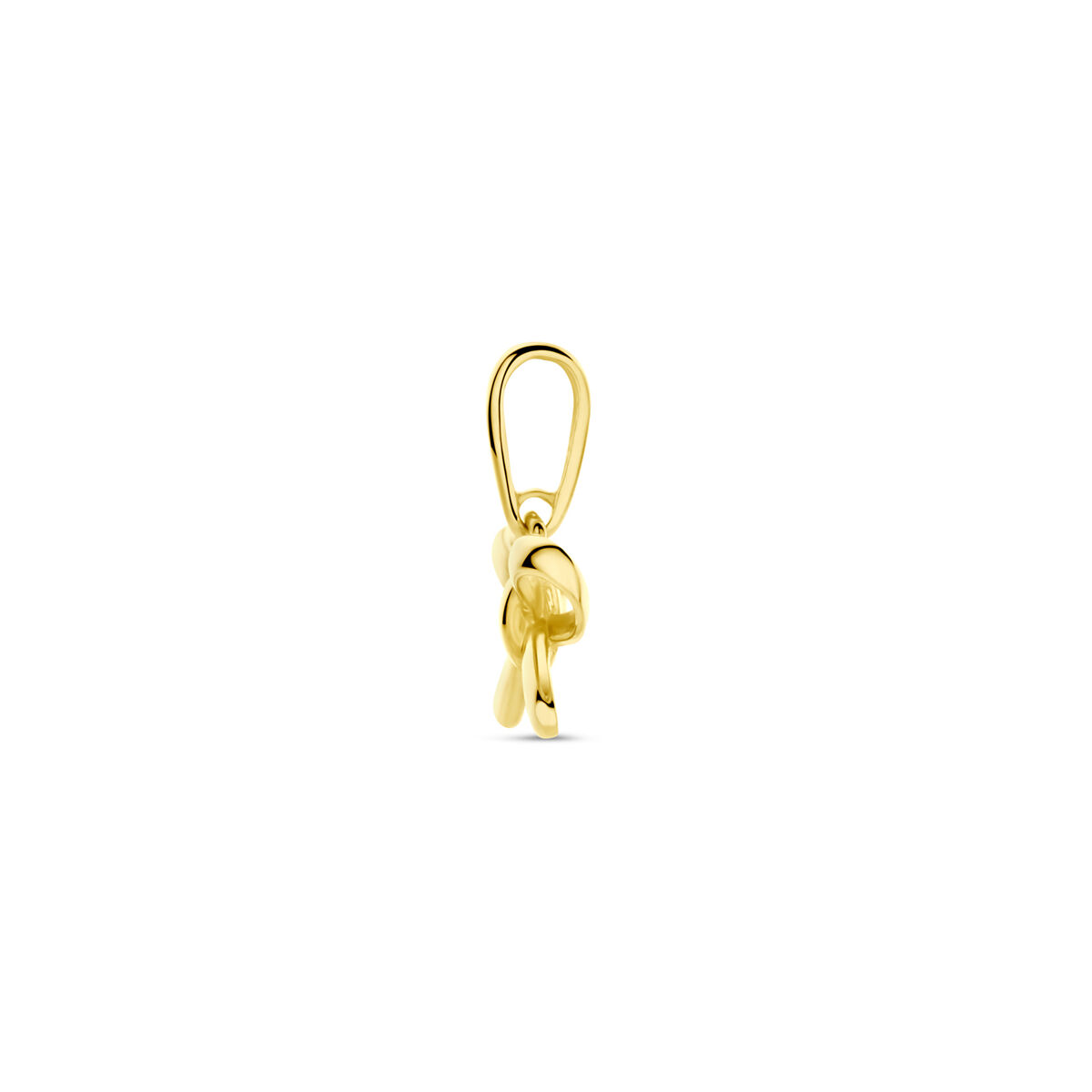 14k geelgouden hanger uitgevoerd in de vorm van een strik met een totale hoogte van 12mm.