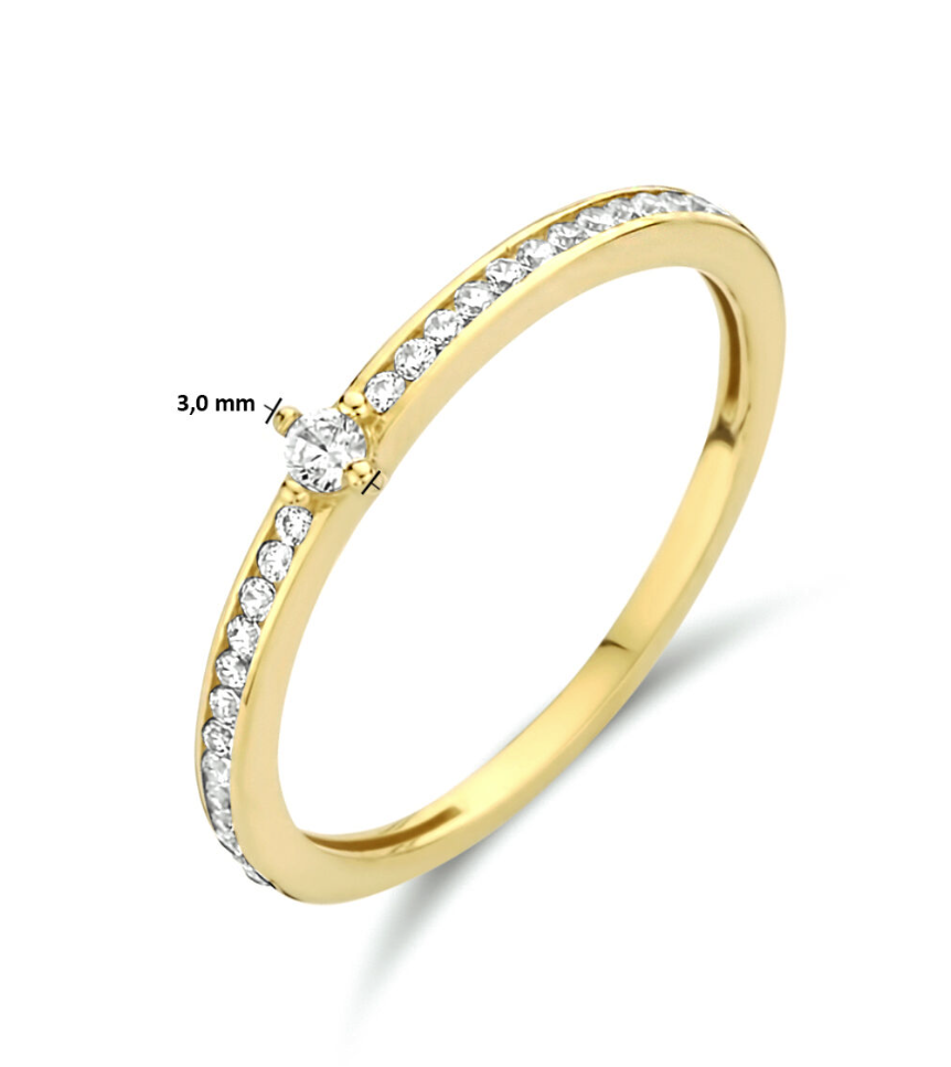14k Geelgouden ring uitgevoerd met een schitterende zirkonia rij.