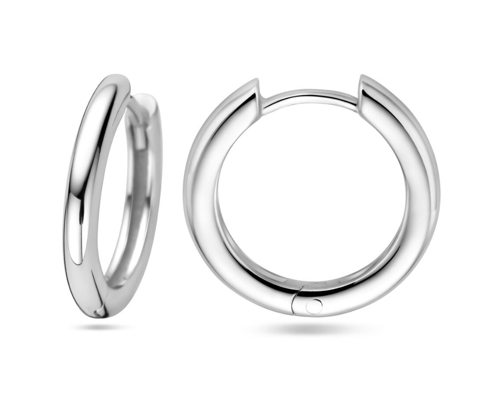 Gerhodineerd 925 zilveren klapoorringen met een halfronde buis. De oorringen hebben een dikte van 3mm. 17 x 3 mm.