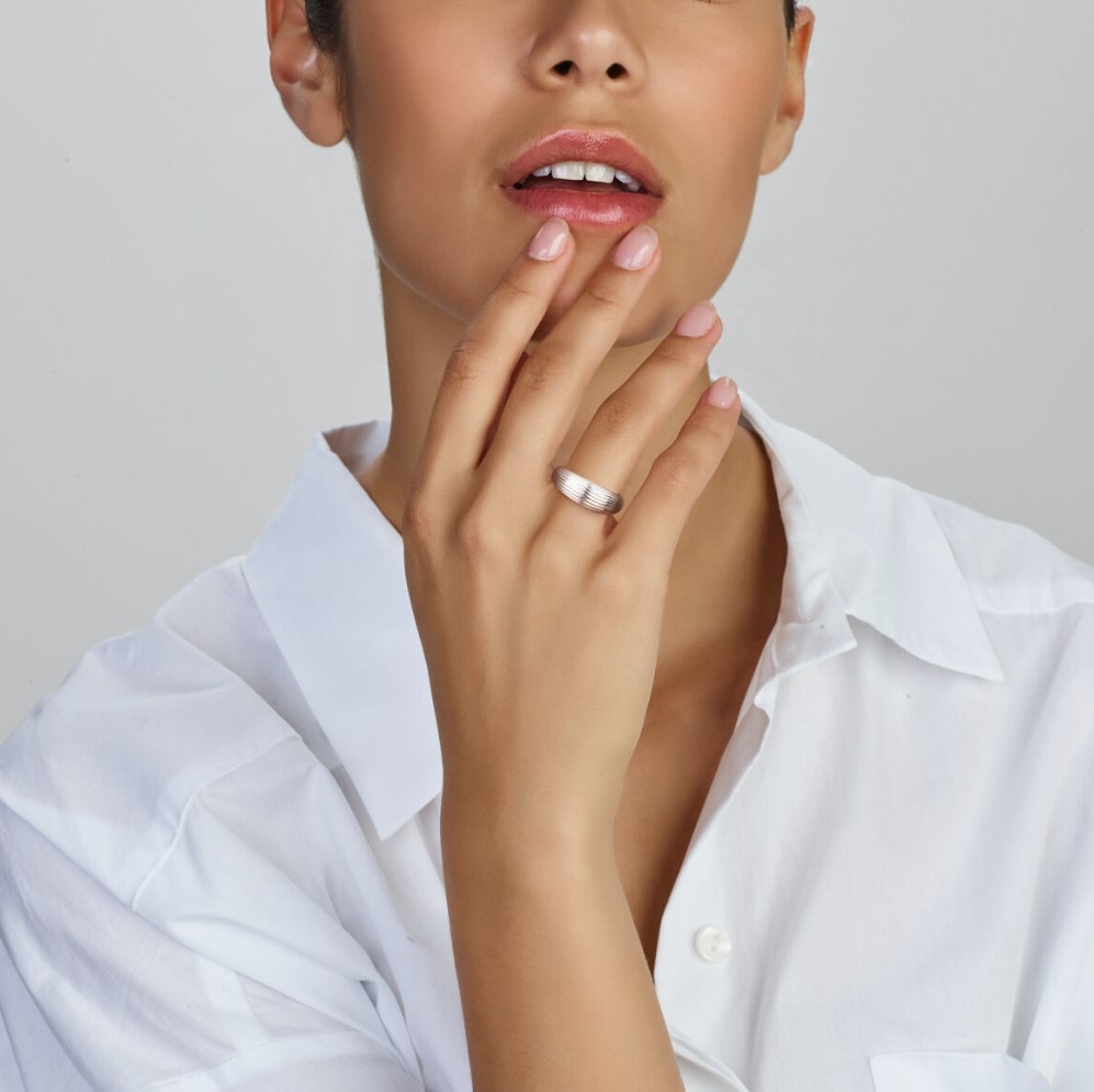 Gerhodineerd 925 zilveren ring met een breedte van 8 mm.