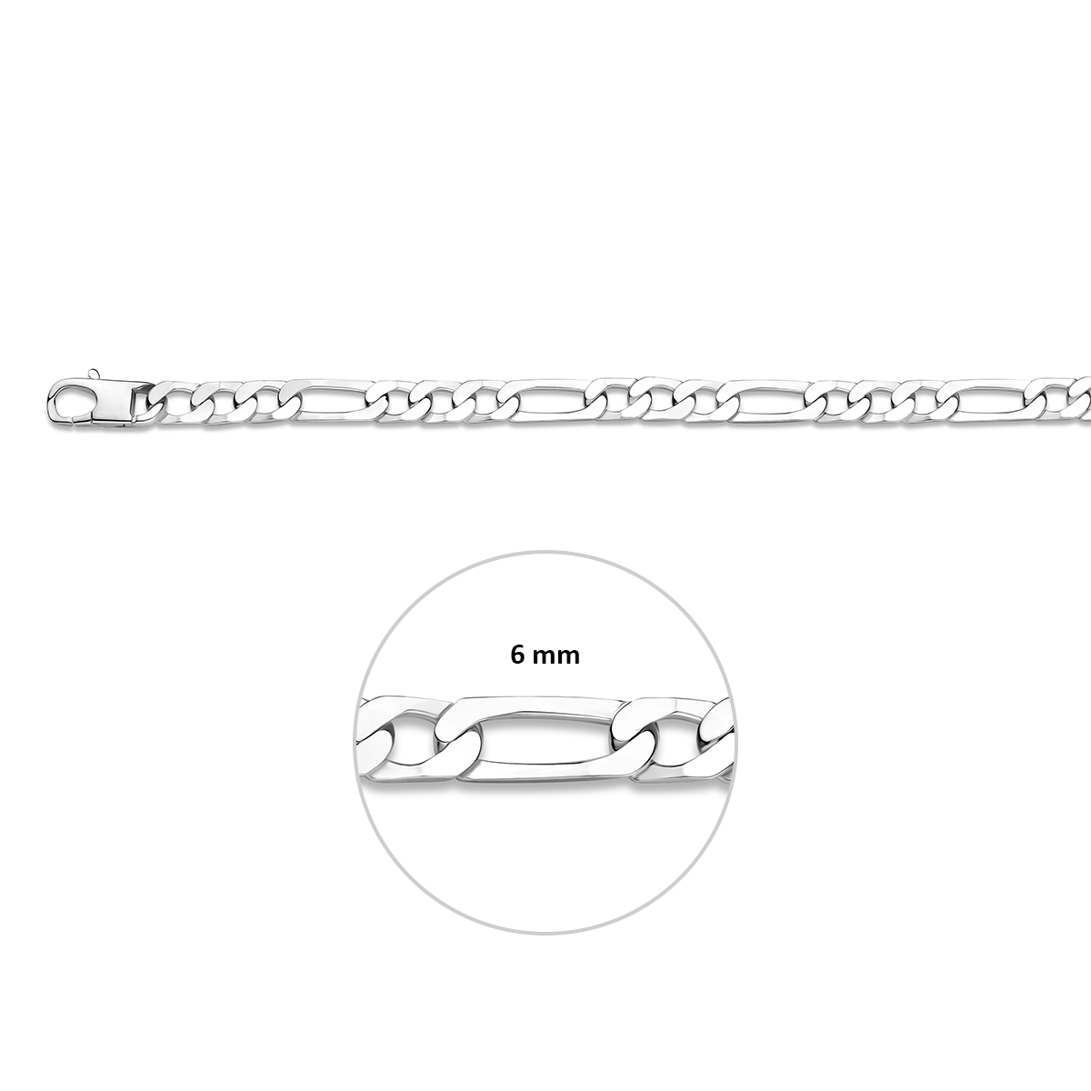Stijlvol zilveren lengte artikel met een figaro schakel. Het lengte artikel heeft een draaglengte van 50cm en een schakelbreedte van 6mm. Uitgevoerd met een stevige karabijn sluiting.