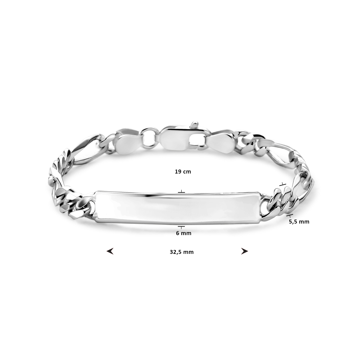 925 Zilveren graveerarmband met een schakelbreedte van 7.5mm. Uitgevoerd met karabijnsluiting. De plaat heeft een afmeting van 8x43mm. De dikte van de graveerplaat is 2mm.