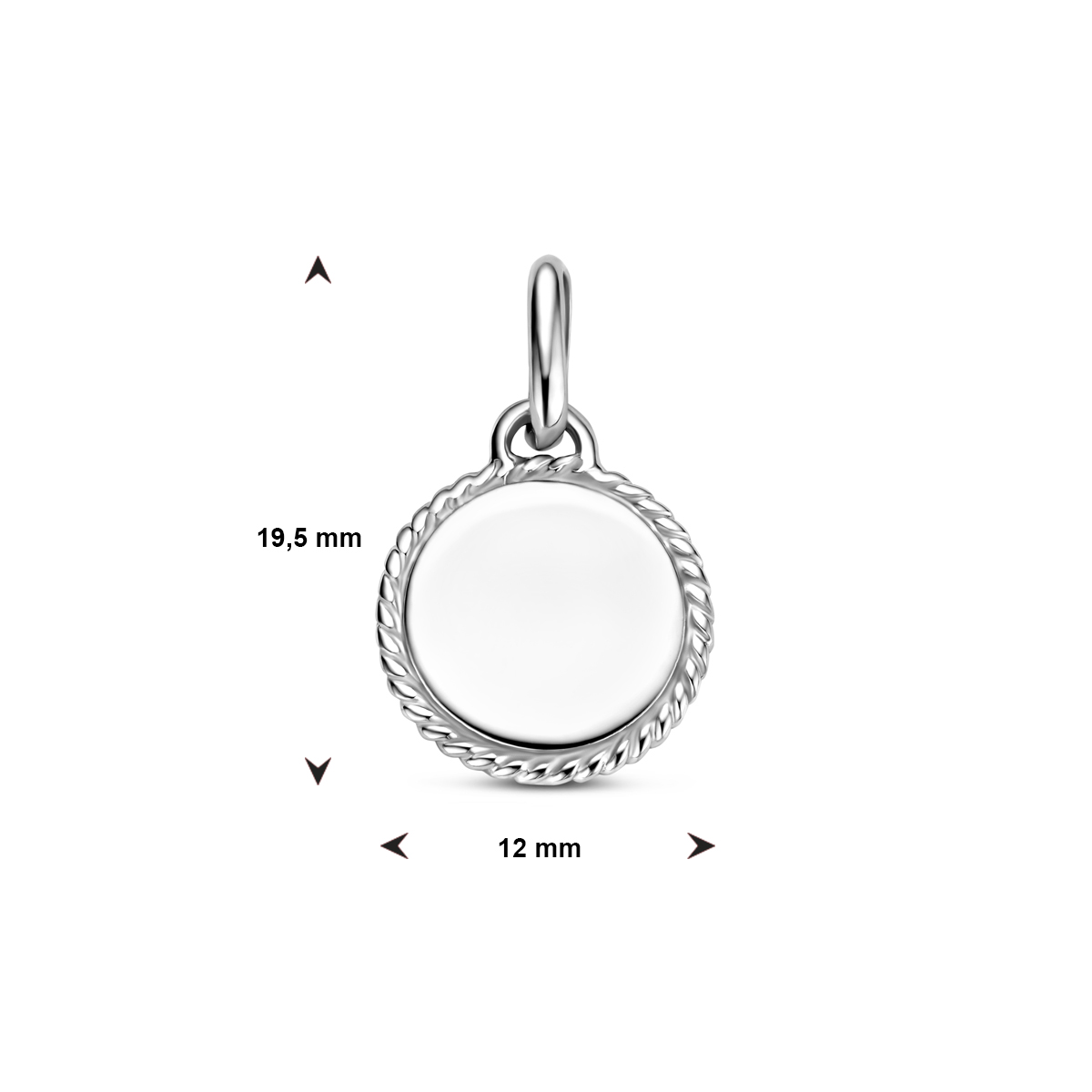 Gerhodineerd 925 zilveren graveerhanger uitgevoerd in de vorm van een rondje. De dikte van de graveerplaat is ongeveer 1.5mm.