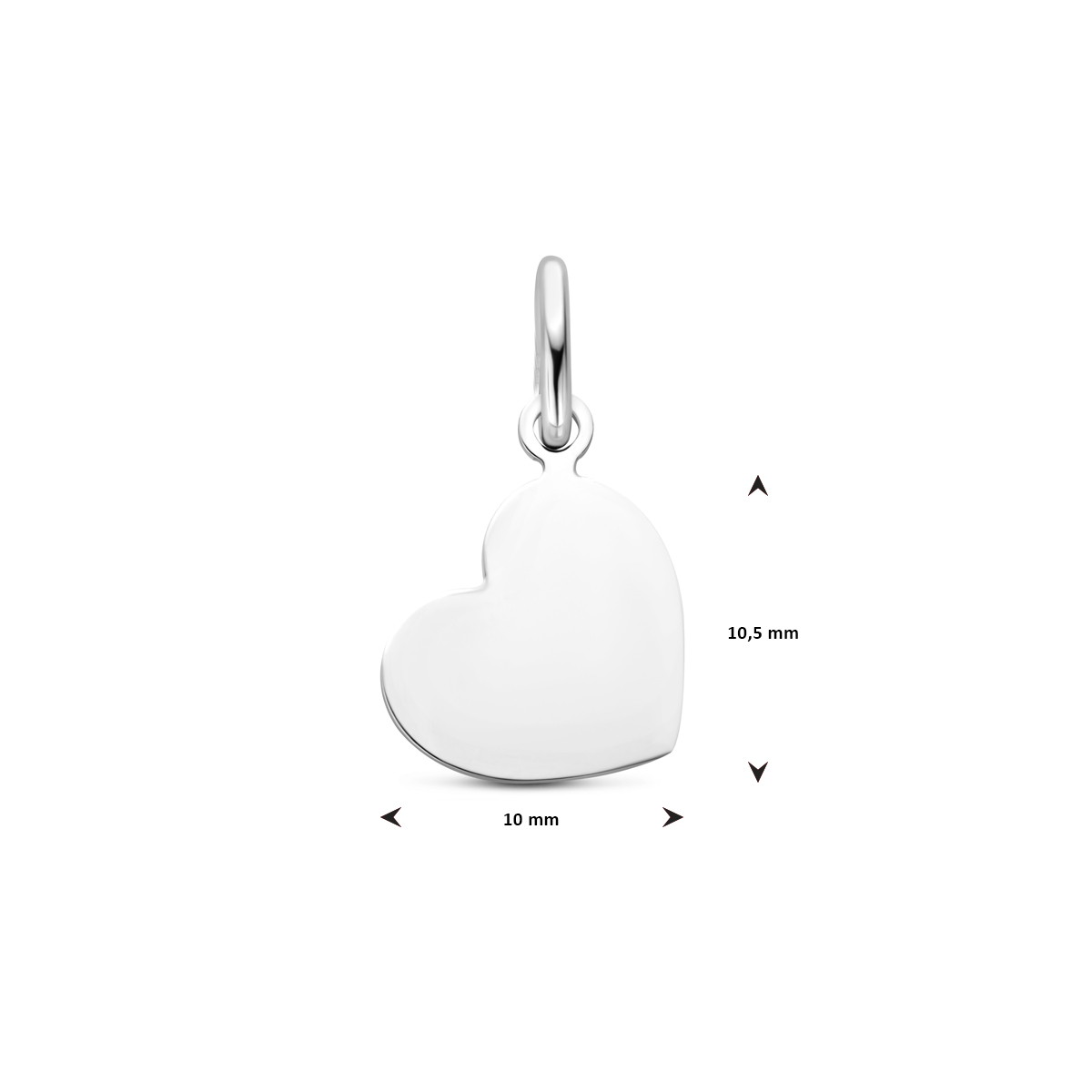 Gerhodineerd 925 zilveren graveerhanger uitgevoerd in de vorm van een hartje. De hanger heeft een totale hoogte van 17.5mm en een graveergedeelte van 10.5x10mm.