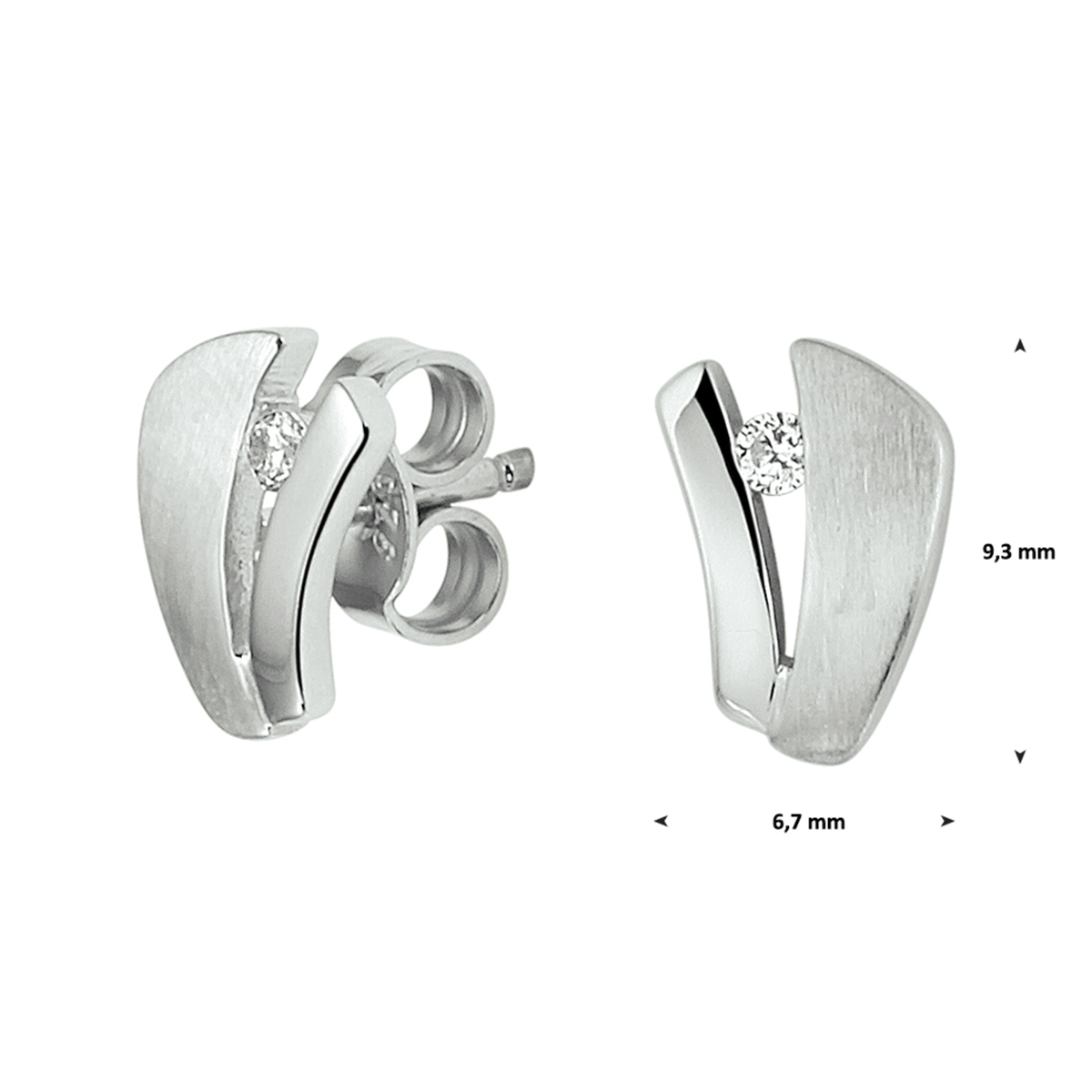 Gerhodineerd zilveren poli/mat oorknoppen met een afmeting van 9.3x6.7mm uitgevoerd met een briljant geslepen zirkonia. De oorknoppen zijn te combineren met bijpassende sieraden uit onze collectie.