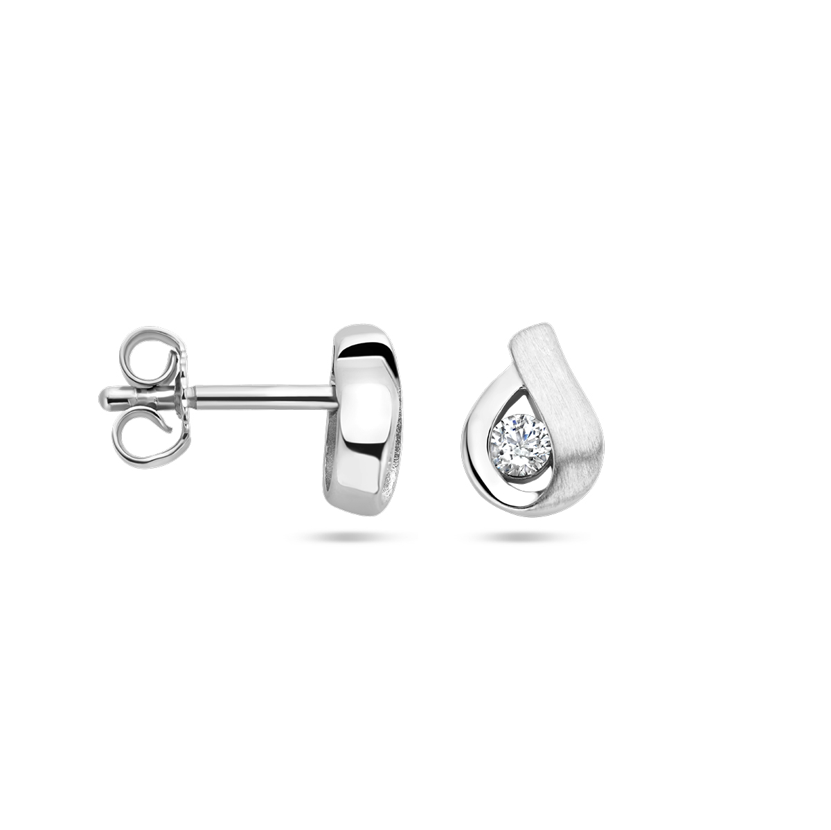 Gerhodineerd 925 zilveren oorknoppen met zirkonia. De oorknoppen hebben een afmeting 8 x 5.5mm.