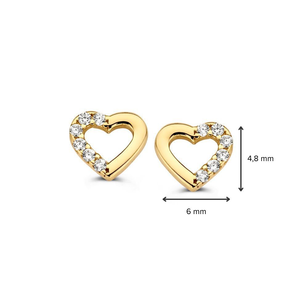 14 karaat geel gouden oorstekers hart met zirkonia.