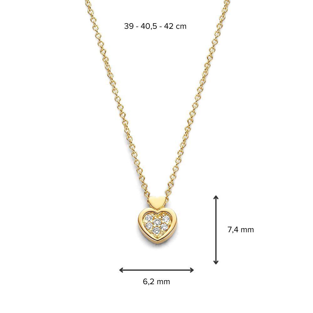 14 Karaat geel gouden collier met hartvormige hanger met briljant. 0.05 crt H/SI. lengte collier 40-41-42 cm.