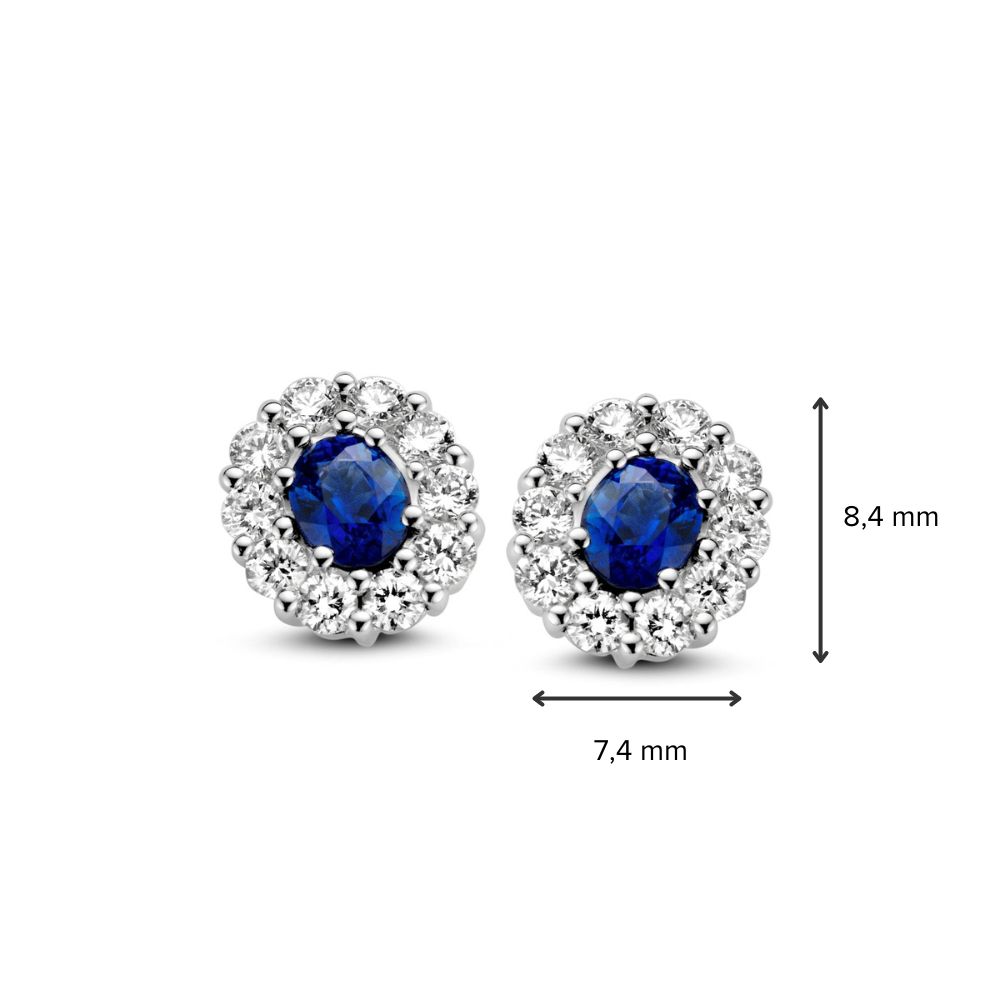 Witgouden oorstekers entourage saffier en briljant. De oorbellen zijn voorzien van stevige witgouden poussettes.