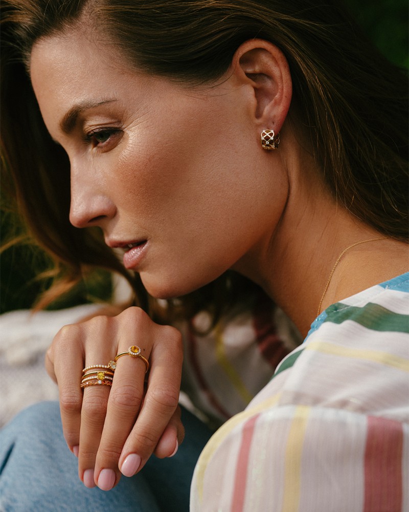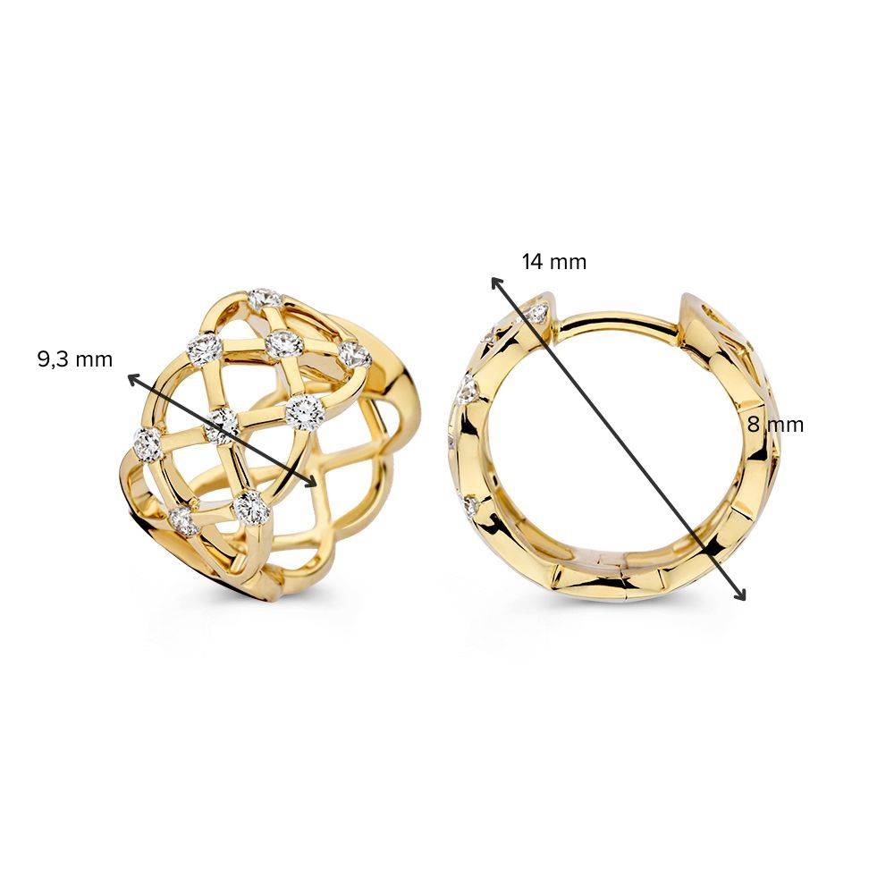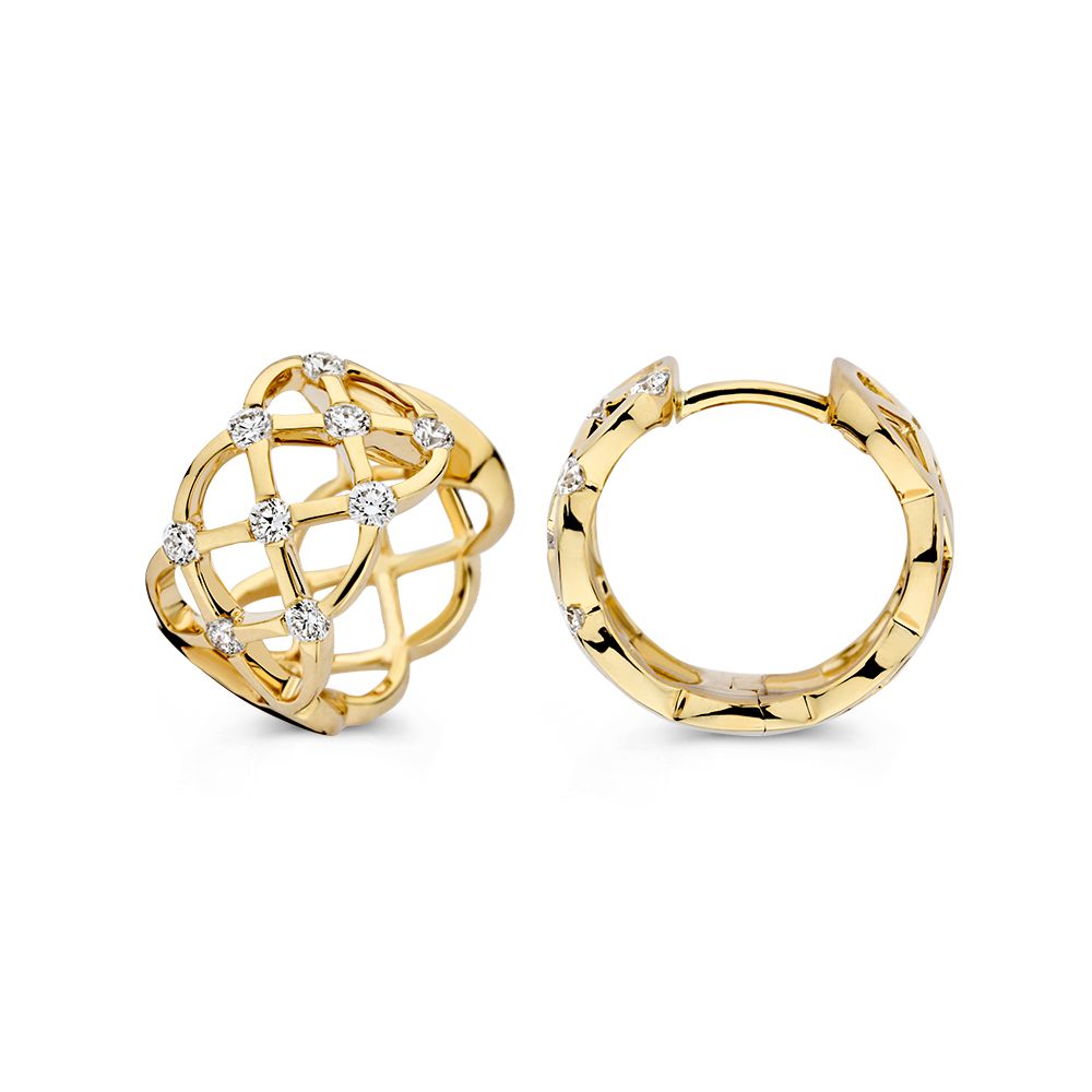 14 Karaat prachtige geelgouden oorringen met 0.44 crt H/SI briljant, het bijzondere, geweven patroon maken van deze oorringen echte eyecatchers in het oor!