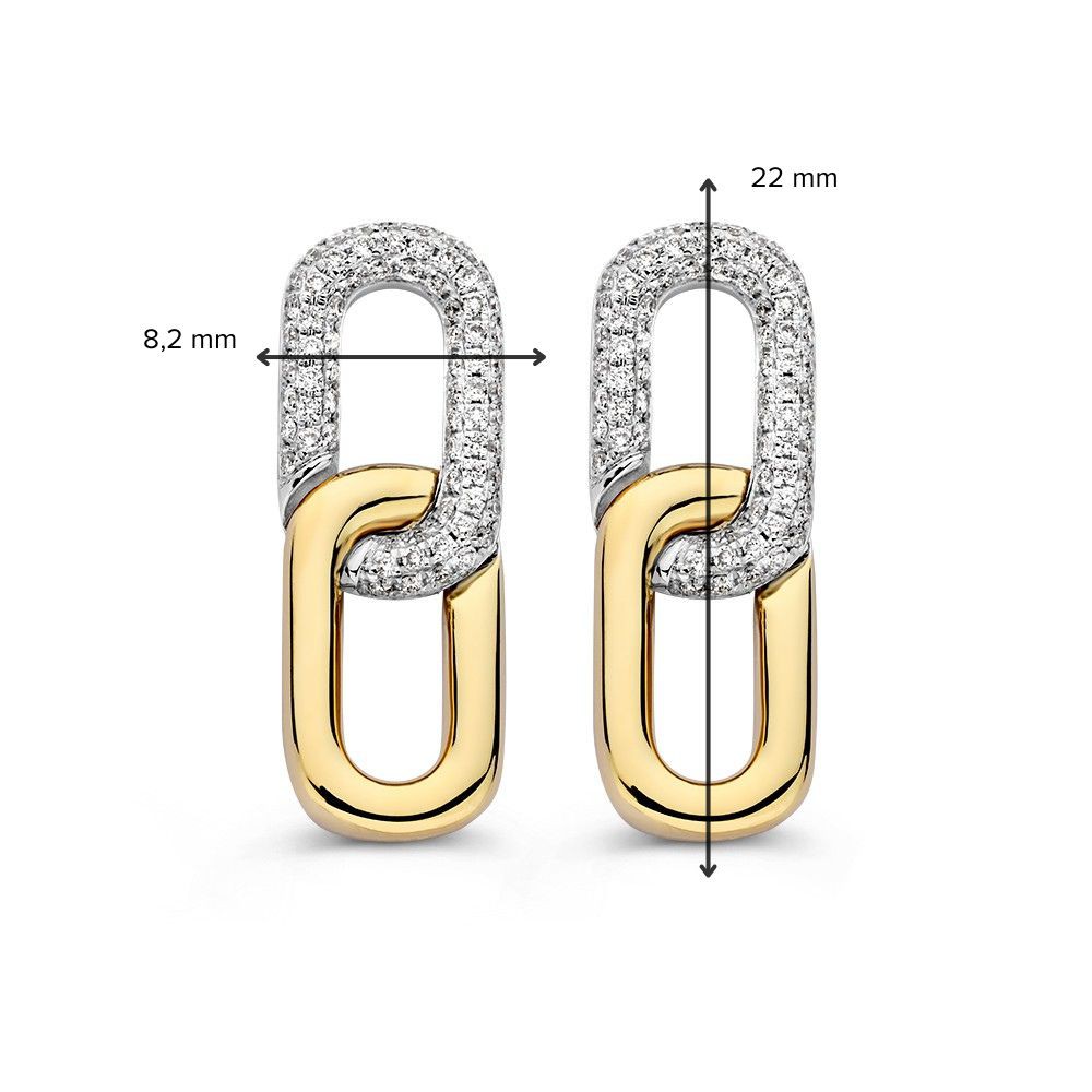14 Karaat geel- met witgouden oorstekers ring in schakel vorm met totaal 0.40 crt H/SI briljant pavé gezet.