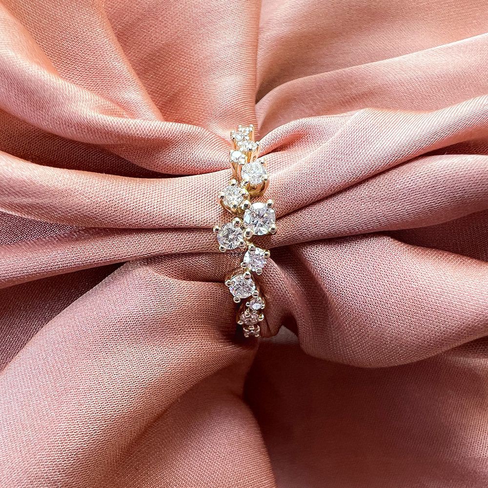 Schitterende geelgouden ring gezet met briljant geslepen diamanten. Een plaatje om de vinger!