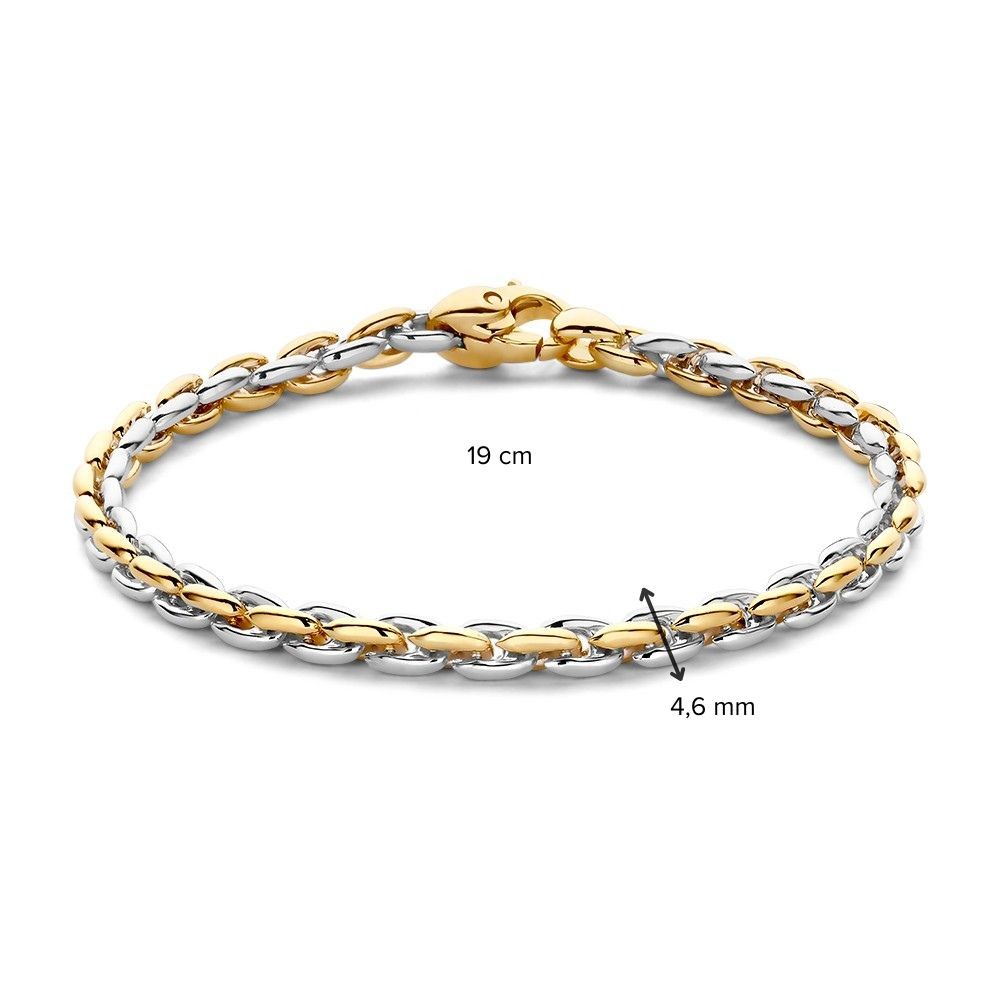 Elegante, bicolor wit- en geelgouden schakelarmbanden met een perfecte afwerking.
