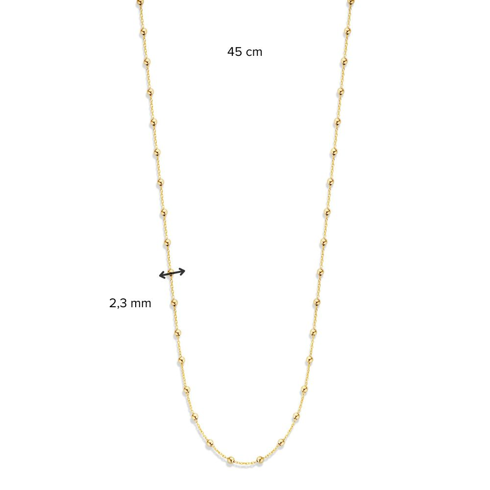 14 karaat geel goud dames fantasie anker collier met bolletjes. 45 cm lang.