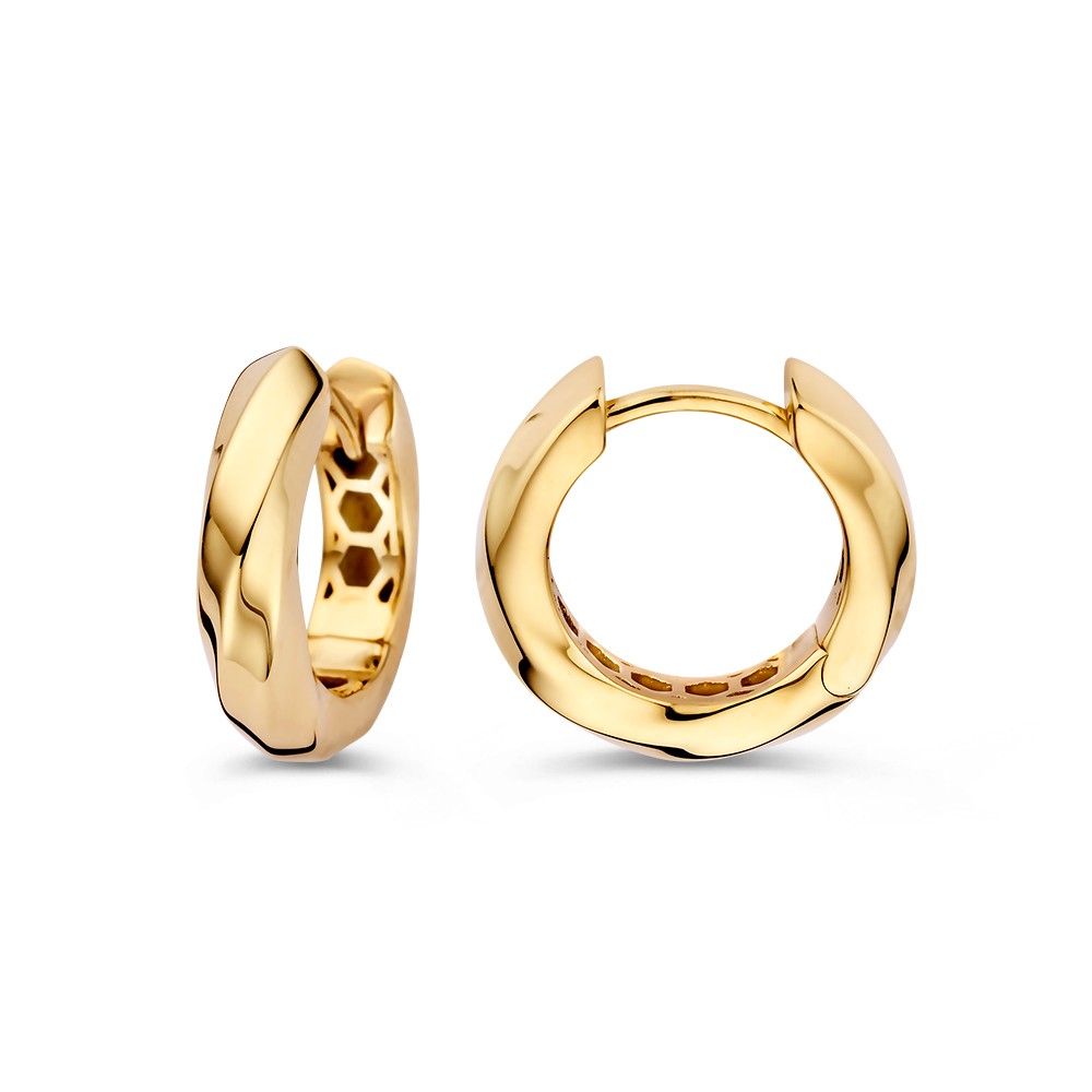 14 karaat geel gouden fantasie oorringen met gedraaide band.