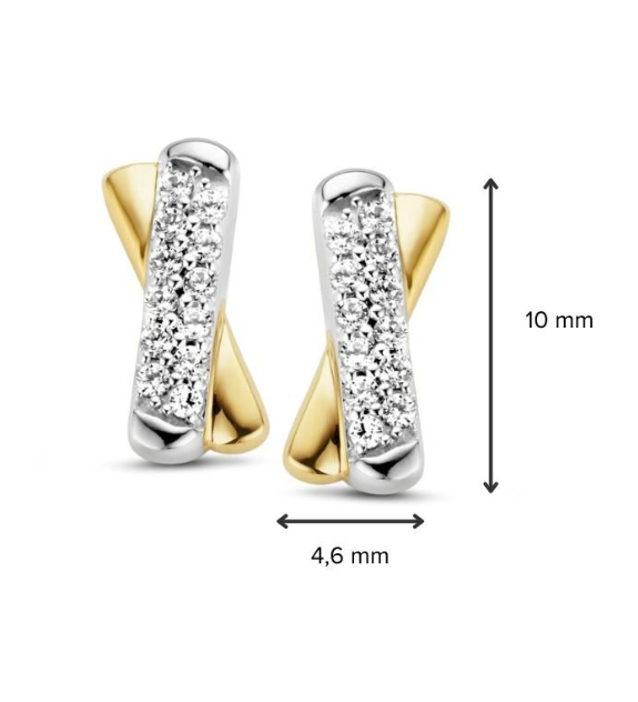 14 karaat bicolor geel- met witgouden oorstekers met zirkonia.
