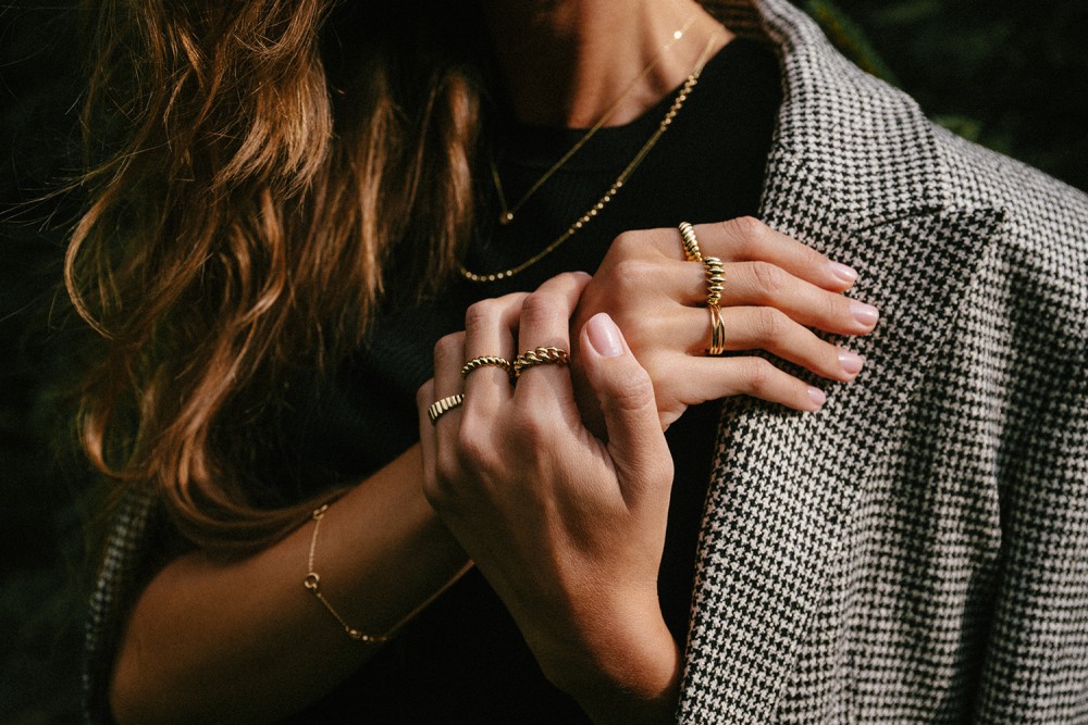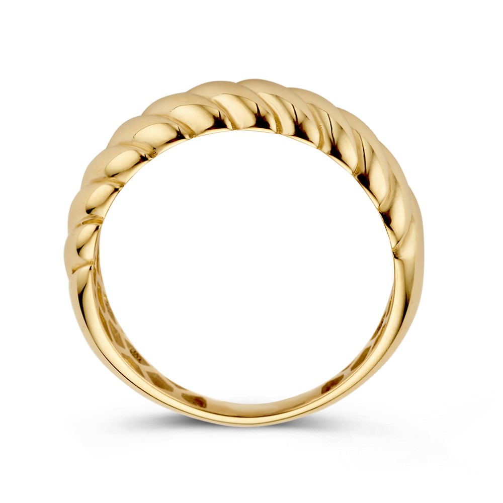 14 Karaat geel gouden dames fantasie ring met gedraaide band.