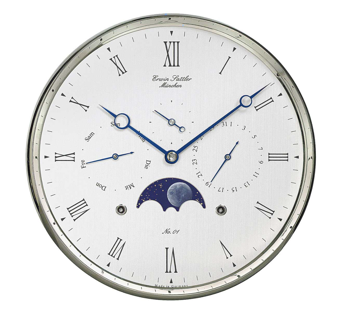 Zwart gelakt. 185 cm hoog, 29 cm breed en 11 cm diep. Facet geslepen mineraal glas. Uurwerk Sattler Kaliber 1675. loopduur 30 dagen. 8 Precisie kogellagers en 15 Robijn lagers. Geanodiseerde wijzerplaat met handbeschilderde maanschijf dag en datum aanduiding. Geblauwde stalen wijzers. Slagwerk op de hele en de halve uren op rondgong.