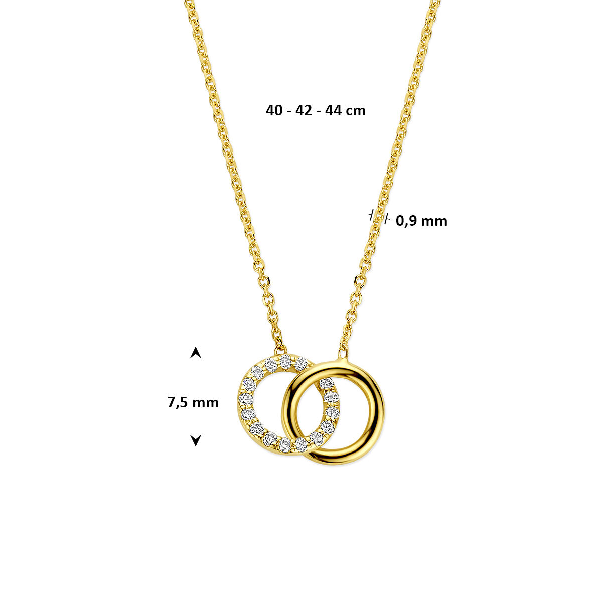 14k Geelgouden collier uitgevoerd met lab grown diamant. Het collier heeft draaglengtes van 40-42-44cm en een schakelbreedte van 0.9mm. Het totale diamantgewicht is 0.09ct. Onder extreem hoge druk en temperatuur wordt het natuurlijk ontstaansproces nagebootst met als eindresultaat een diamant met dezelfde chemische eigenschappen maar met een andere oorsprong.