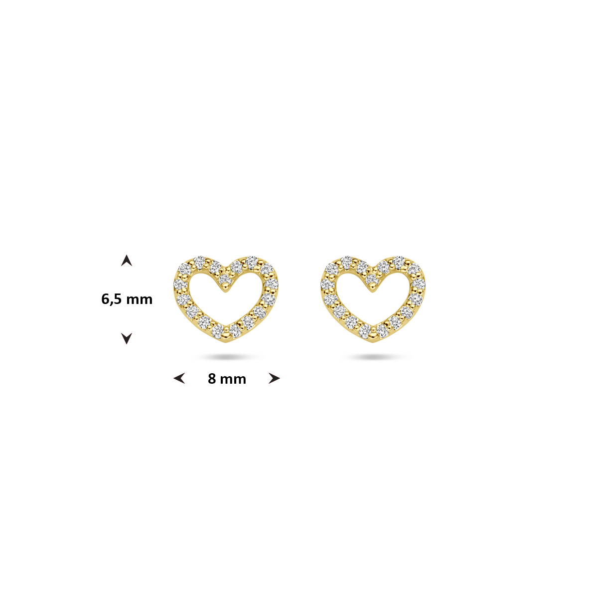 14k Geelgouden oorknoppen uitgevoerd in de vorm van een hartje met lab grown diamant. De oorknoppen hebben een afmeting van 6.5x8mm. Het totale diamantgewicht is 0.19ct.