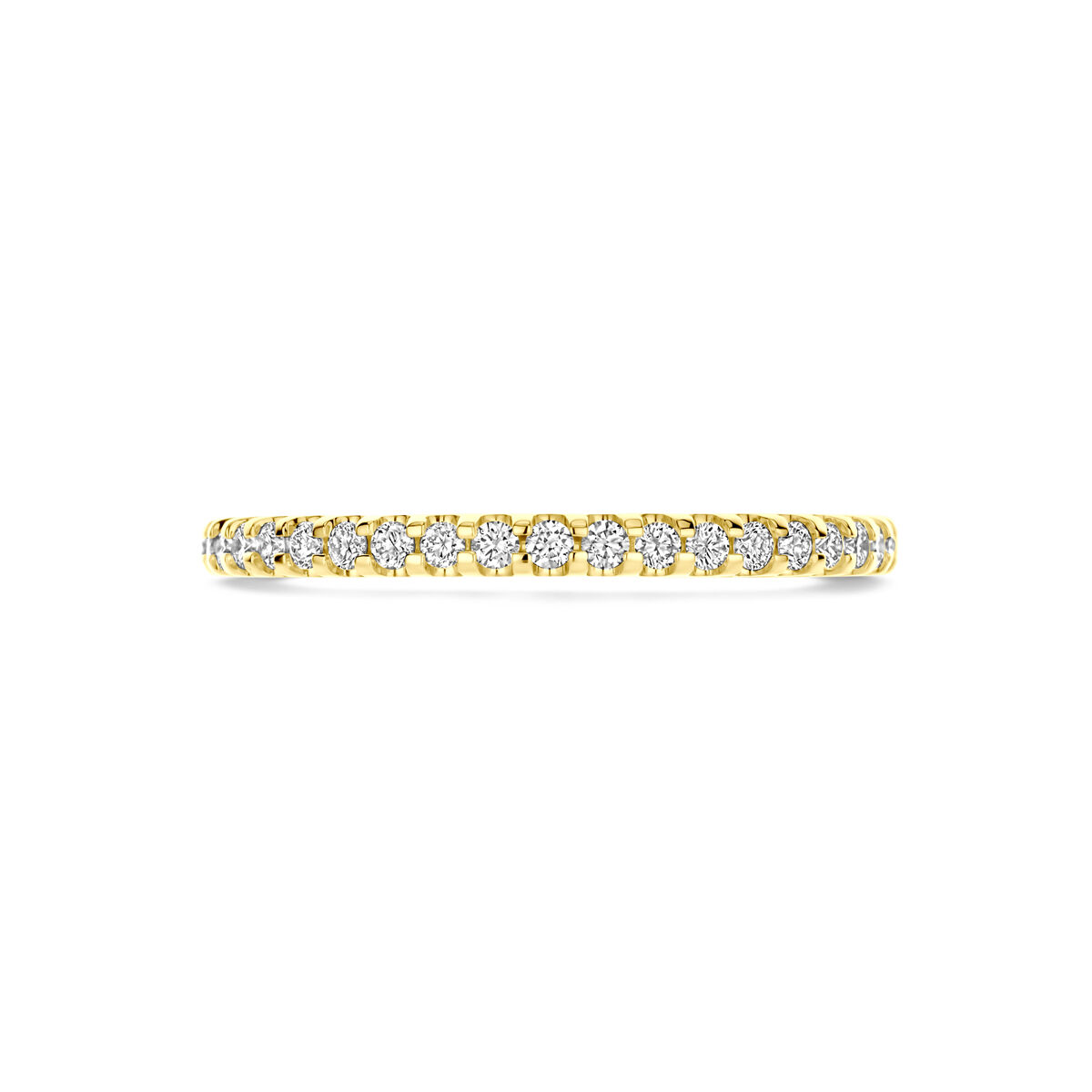 14k Geelgouden ring uitgevoerd met lab grown diamant. De ring heeft een breedte van 2mm. Het totale diamantgewicht is 0.25ct. Lab grown diamanten zijn diamanten die ontstaan in een laboratorium. Onder extreem hoge druk en temperatuur wordt het natuurlijk ontstaansproces nagebootst met als eindresultaat een diamant met dezelfde chemische eigenschappen maar met een andere oorsprong.