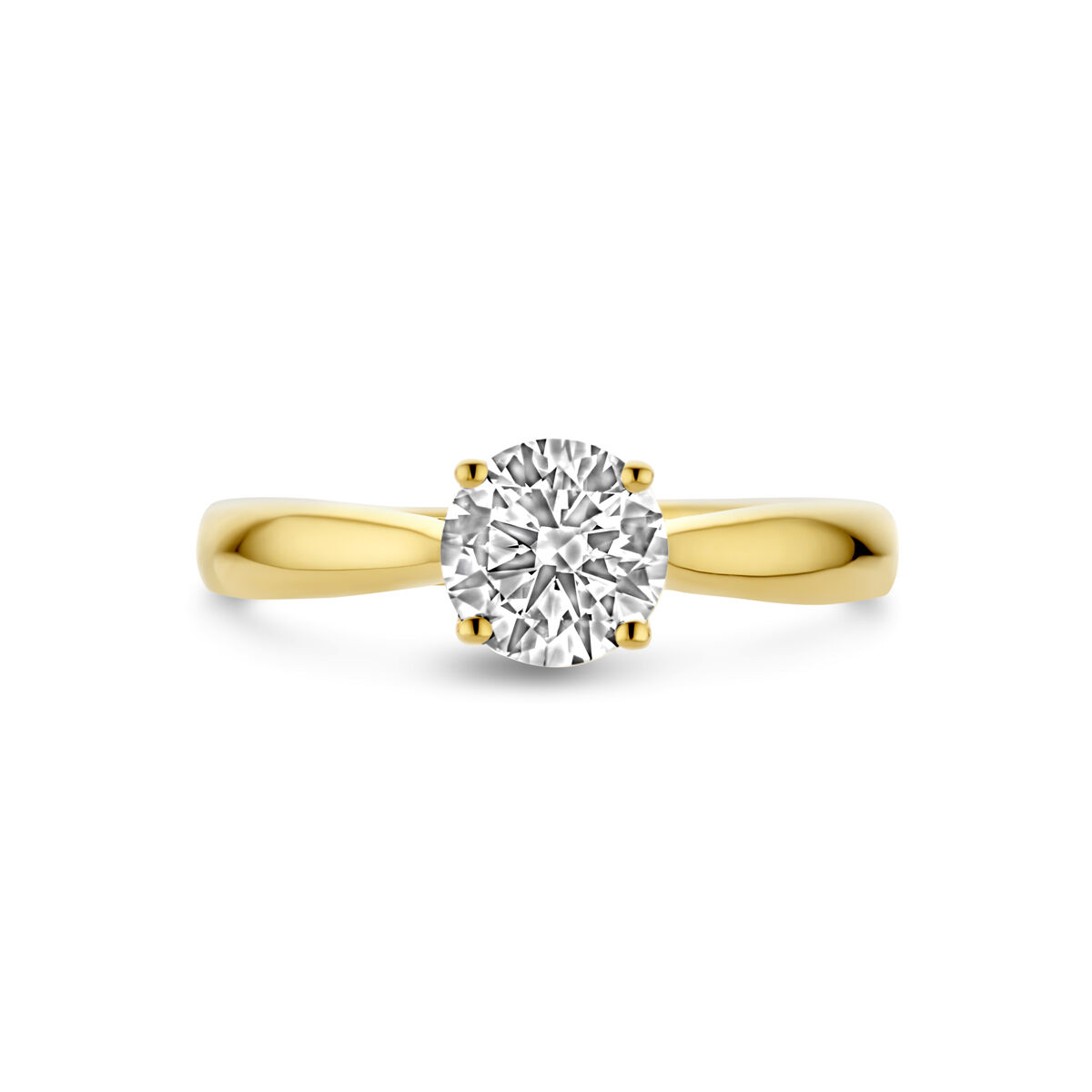 14k Geelgouden ring uitgevoerd met lab grown diamant. De ring heeft een breedte van 6.5mm. Het diamantgewicht is 1.00ct. Lab grown diamanten zijn diamanten die ontstaan in een laboratorium. Onder extreem hoge druk en temperatuur wordt het natuurlijk ontstaansproces nagebootst met als eindresultaat een diamant met dezelfde chemische eigenschappen maar met een andere oorsprong.