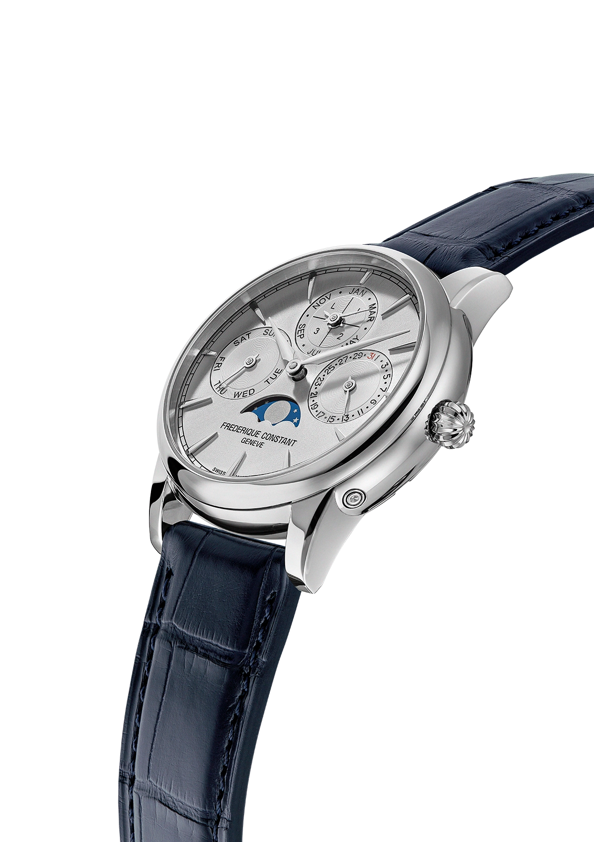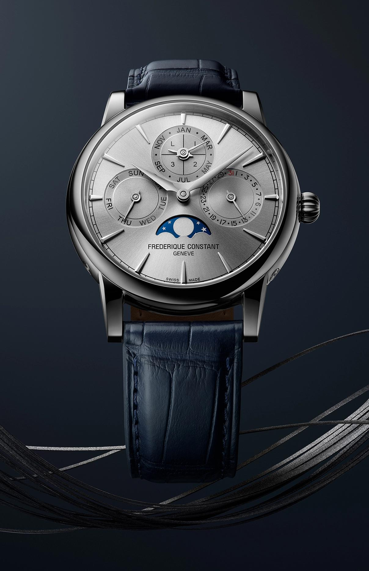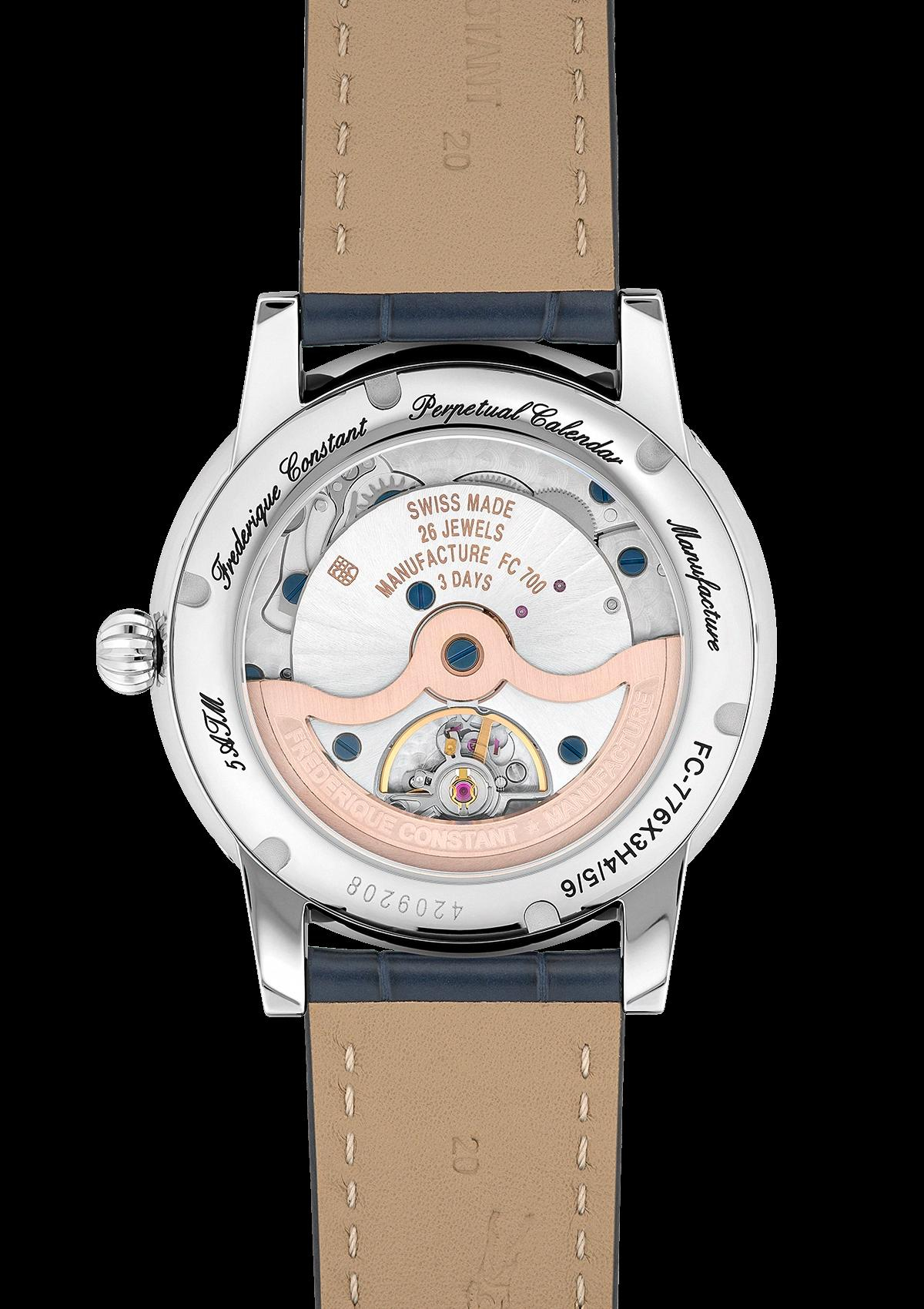 Bij de lancering in 2016 werd de Classic Perpetual Calendar Manufacture van Frederique Constant erkend als de meest betaalbare eeuwigdurende kalender op de horlogemarkt. Vandaag de dag legt het horloge de lat nog hoger op het gebied van kwaliteit, afwerking van de componenten en de technische kenmerken van het uurwerk. De wijzerplaat heeft nu een kleur die favoriet is bij verzamelaars: een zilveren versie op een stalen kast, verkrijgbaar met een diameter van 40 mm. De nieuwe Classic-kast herbergt het nieuwe kaliber Manufacture FC-776, het 34e dat intern is ontwikkeld door de horlogemaker uit Genève, met een gangreserve van drie dagen.