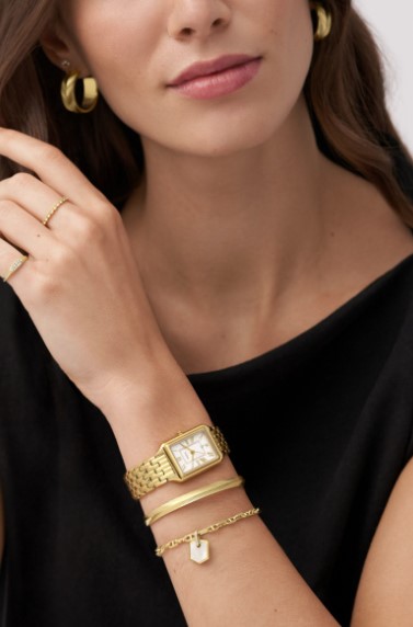 Fossil Quartz dames pols horloge staal met stalen band goudkleurig uit de collectie Raquel.