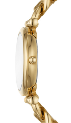 Fossil Quarts dames pols horloge staal goud kleurig met vaste metalen band. 5 ATM waterdicht.