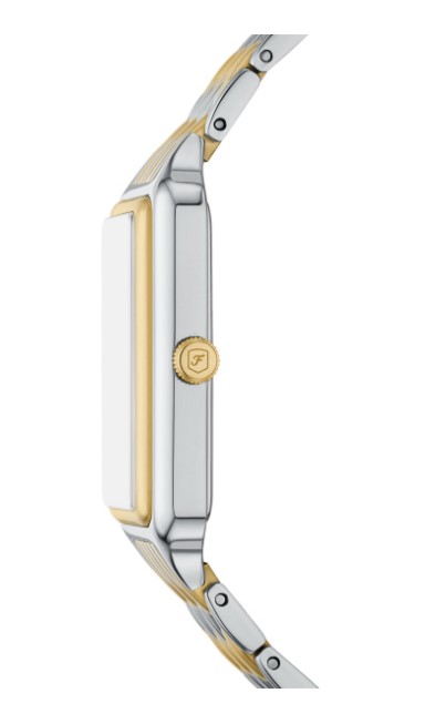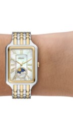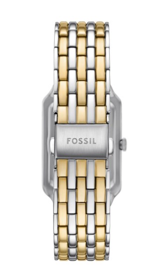 Fossil Quartz dames pols horloge staal met stalen band bicolor uit de collectie Raquel. Met maanstand.