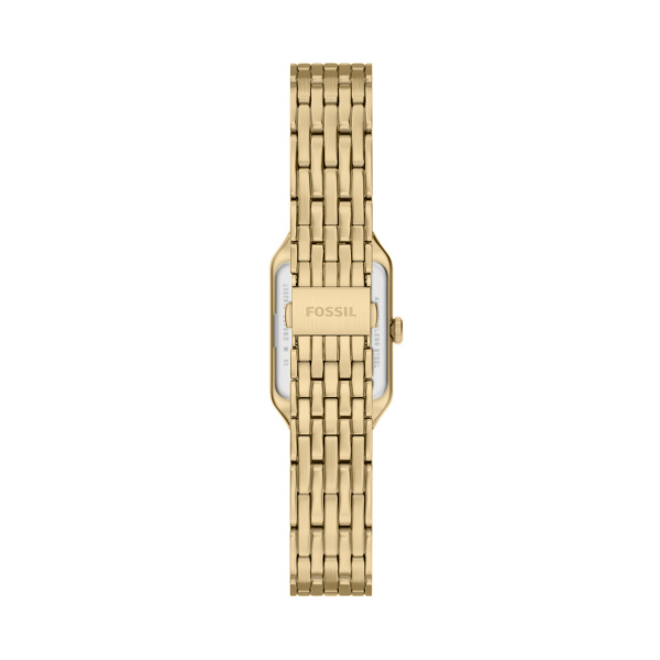Fossil dames pols horloge staal met stalen band goudkleurig uit de Raquel collectie. 5 ATM waterdicht.