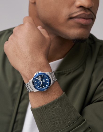 Fossil Quartz heren pols horloge staal met stalen band uit de collectie Fossil Blue.