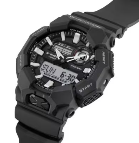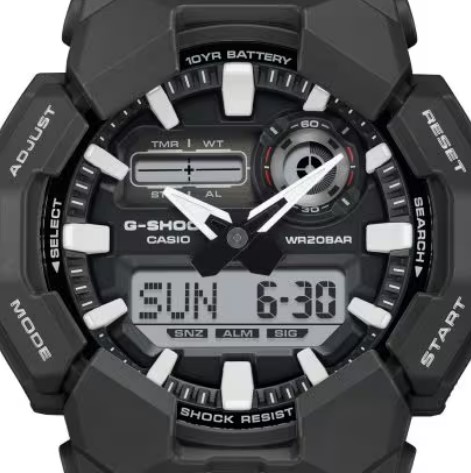De analoog-digitale GA-010 biedt handige functies zoals de wereldtijd en een stopwatch, evenals een zeer helder ledlicht, dat gemakkelijk toegankelijk is met de grote knop aan de voorkant van de kast, zodat je zelfs in het donker goed kunt zien.