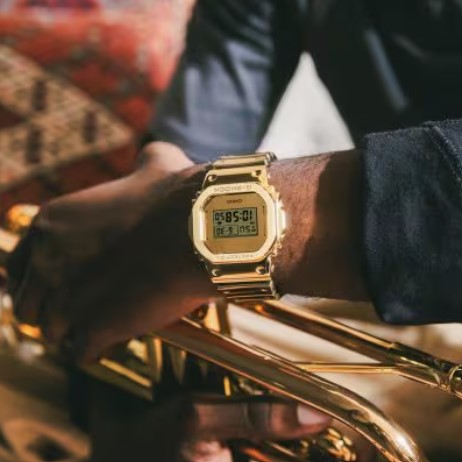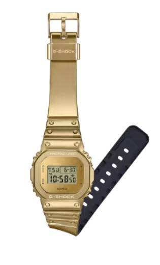 De monochrome esthetiek combineert een goudkleurige metalen bezel met een nieuw ontwikkelde siliconen band in dezelfde kleur. Het oppervlak van de band is beschermd met een urethaanlaag die is afgewerkt met gouddamp voor een metallic glans in een band die geweldig aanvoelt tegen de huid. Zacht en comfortabel om te dragen, met een glitterende metalen look, zijn deze horloges mode-items die je overal mee naartoe nemen.
