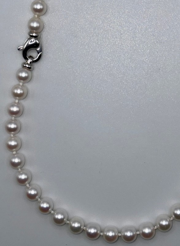 Culivé parel collier Akoya parels A kwaliteit 7-7,5 mm met een 14 karaat witgouden luxe karabijn sluiting met speciale parel aanzet delen.