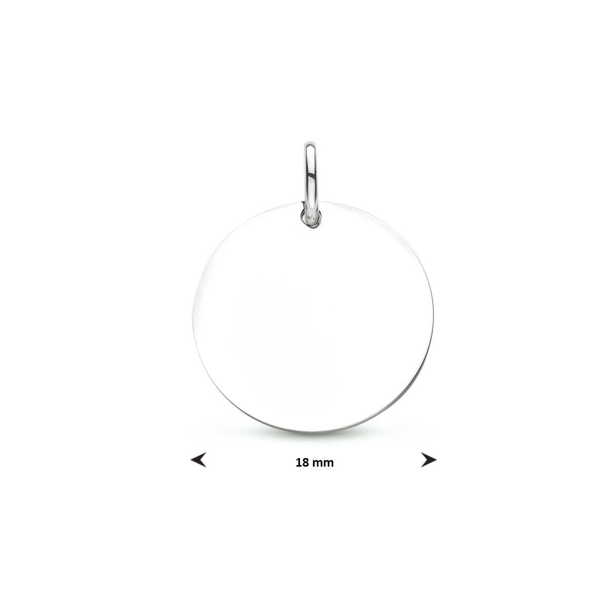 Gerhodineerd 925 zilveren graveerhanger. De hanger heeft een diameter van 18mm.