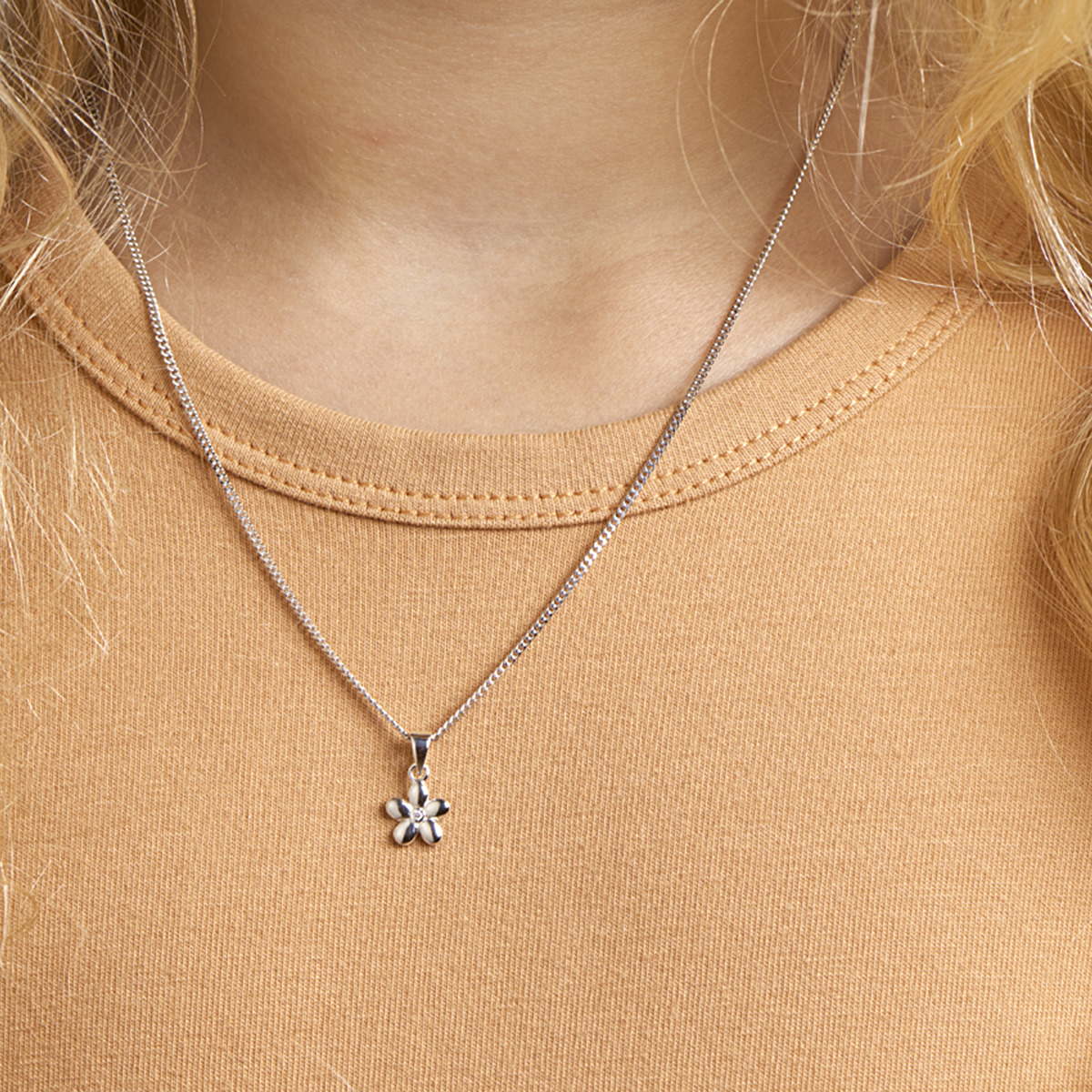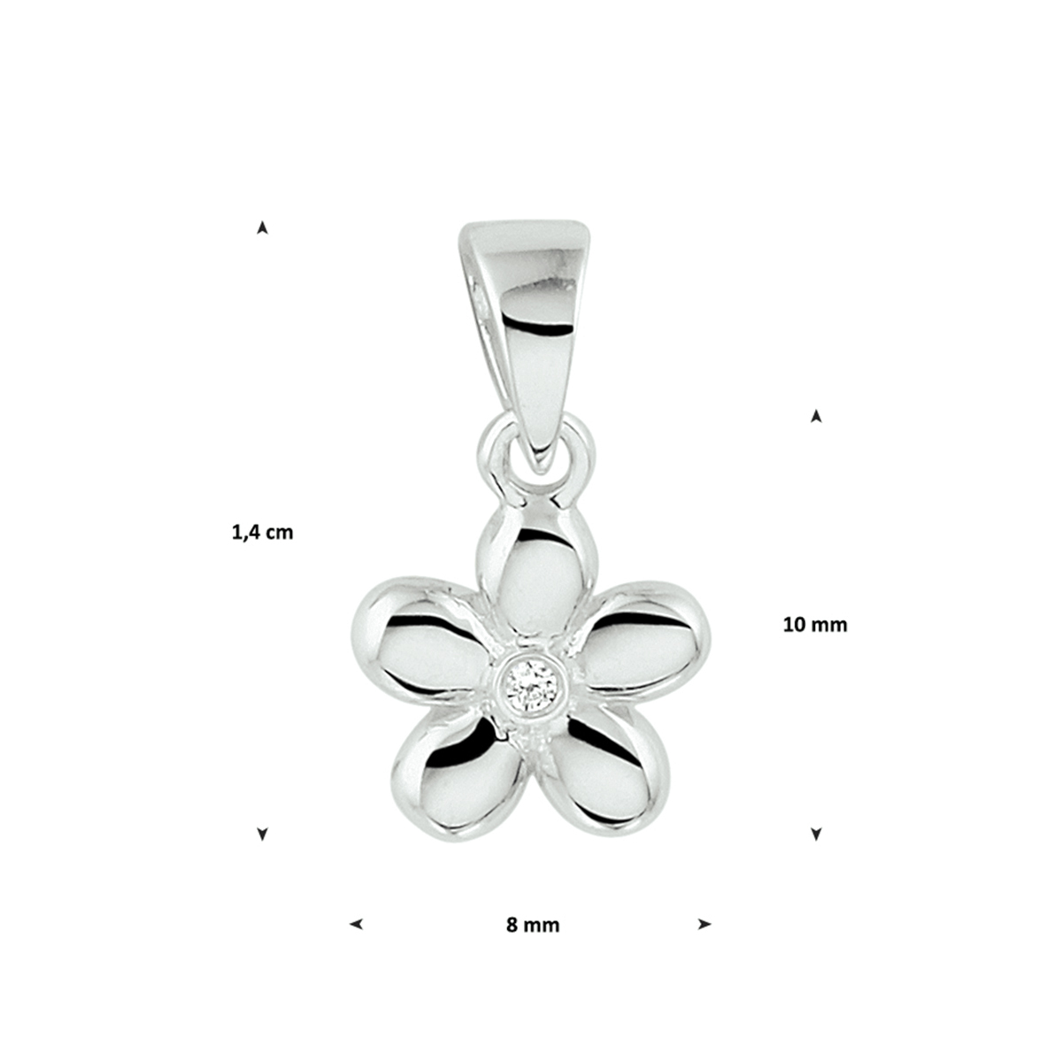 Gerhodineerd zilveren hanger in de vorm van een bloem. Uitgevoerd met een schitterende zirkonia. Tip: Leuk om kado te geven! Zie je ze al stralen?