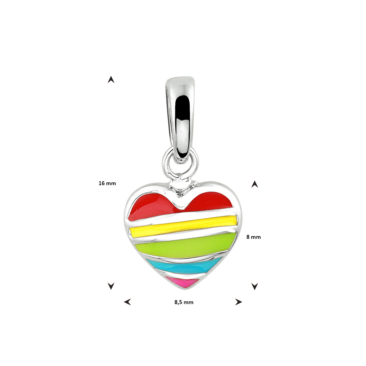 Gerhodineerd 925 zilveren hanger in de vorm van een hart. De hanger heeft een totale hoogte van 16mm en het hart heeft een afmeting van 8x8.5mm.