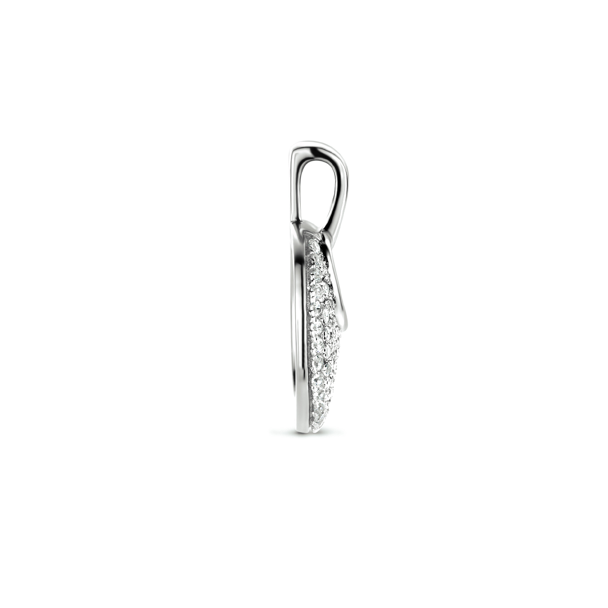 Gerhodineerd 925 zilveren hanger uitgevoerd met schitterende zirkonia. De hanger heeft een diameter van 13mm.