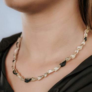 Een echt Jéh Jewels collier, gemaakt van 925 sterling zilver in combinatie met geoxideerd zilver. Een elegant collier, wat door de ronde vormen prachtig in de hals valt.