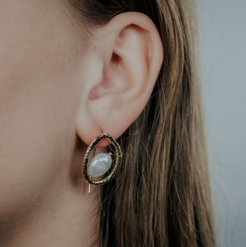 Oorbel open gemaakt van zilver verguld in combinatie met Parel. Combineer deze classy oorhangers van Jéh Jewels met een mooi collier, armband en ring.