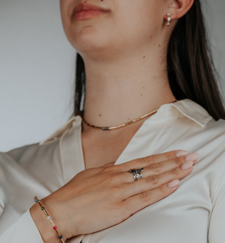 Armband gemaakt van Goldfilled buisjes in combinatie met verschillende edelstenen in de kleuren van de regenboog! Draag deze armband samen met het bijpassende collier voor een complete look.