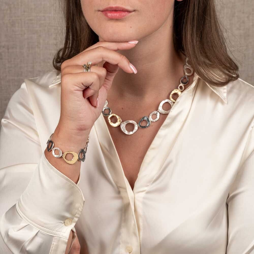 Armband gemaakt van 925 sterling zilver, geoxideerd zilver en zilver verguld. Deze armband is perfect te combineren met het bijpassende collier en de bijpassende oorbellen. Ga voor een complete look!