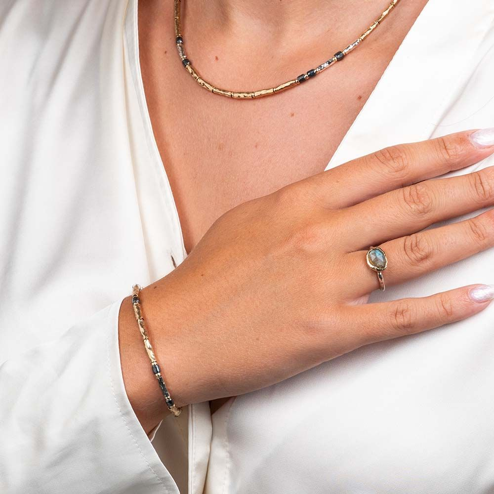Armband gemaakt van geoxideerde zilveren en Goldfilled buisjes. Combineer met het bijpassende collier, een paar oorbellen en een ring voor een complete look!